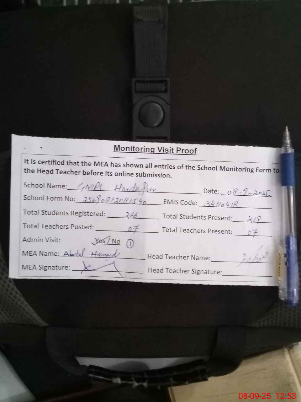 | EMIS Code: 34110418 | Name of School: GMPS HARDU PUR | |||