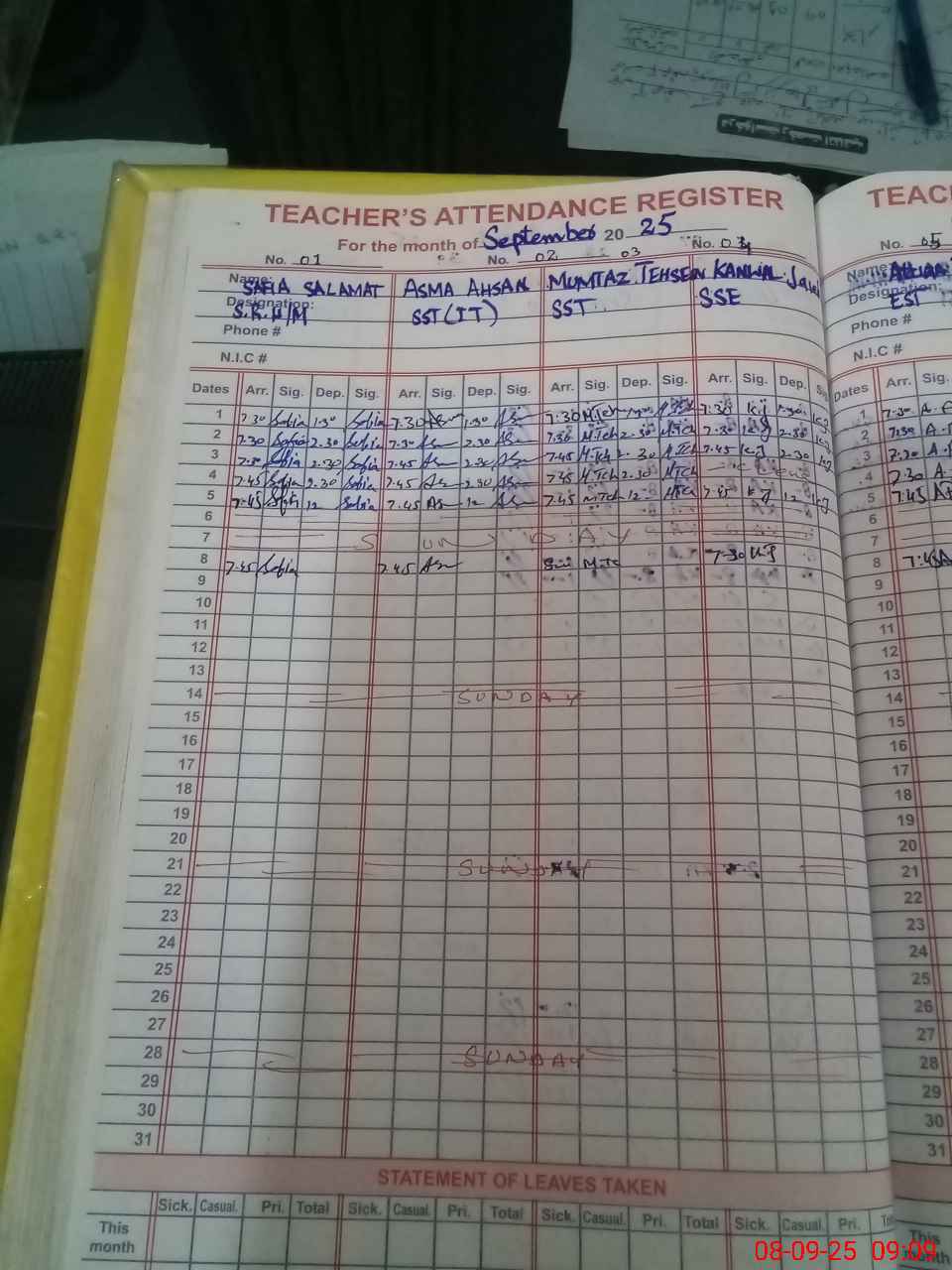 | 35**** | As**** Ma**** | NAIB QASID | Regular | 1 | 0 | 0 | 0 | 0 | 0 | 0 | 0 | 1 | Casual |
