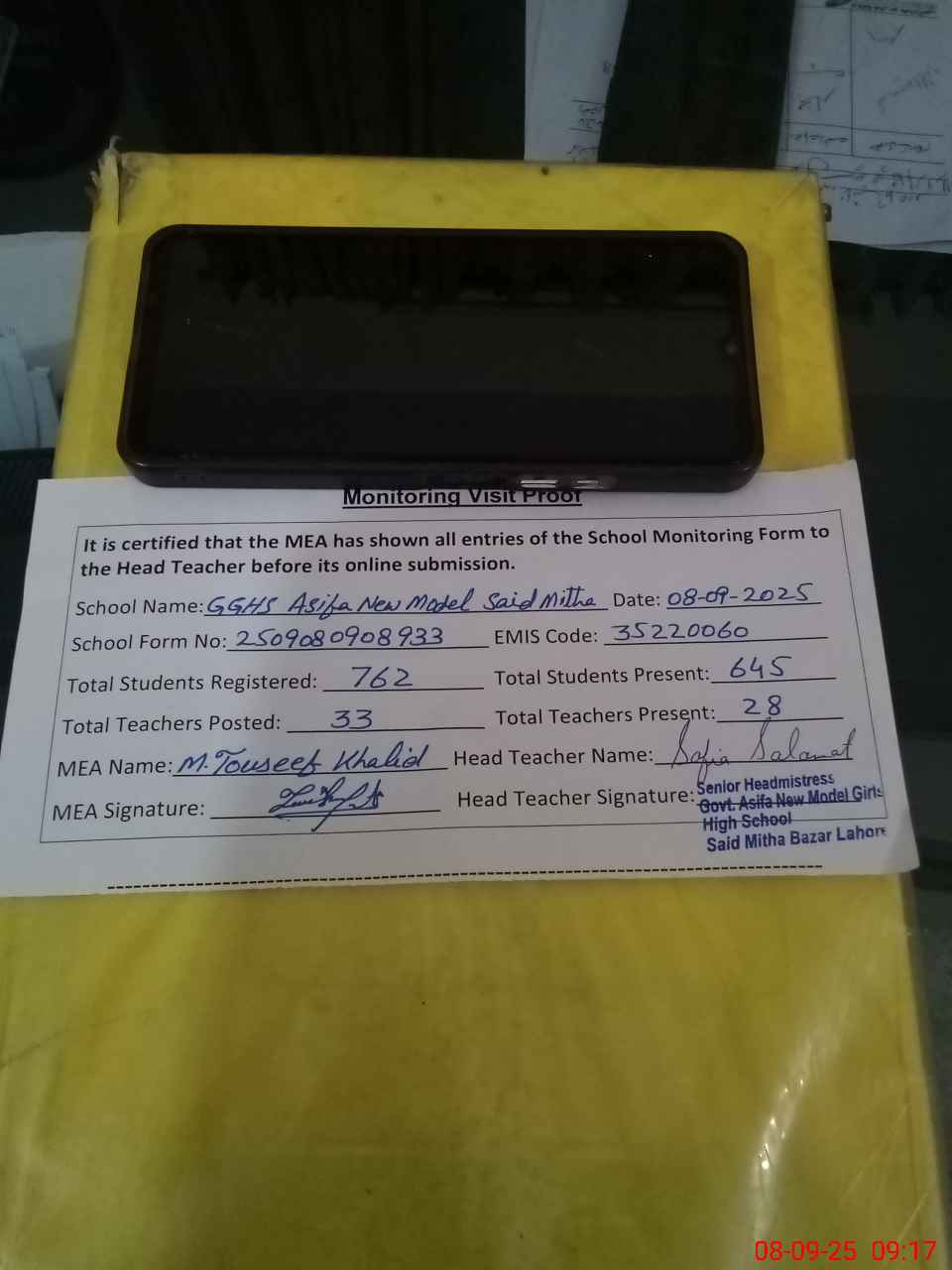 | EMIS Code: 35220060 | Name of School: GGHS ASIFA NEW MODEL SAID MITHA | |||