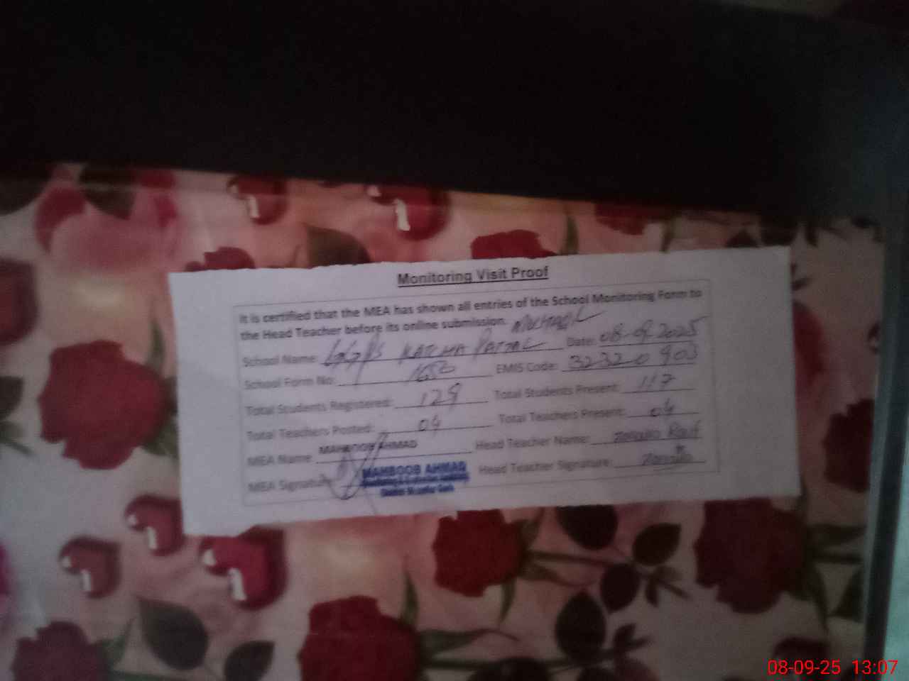 | EMIS Code: 32320903 | Name of School: GGPS KACHA PATTAL MUSTAQIL | |||