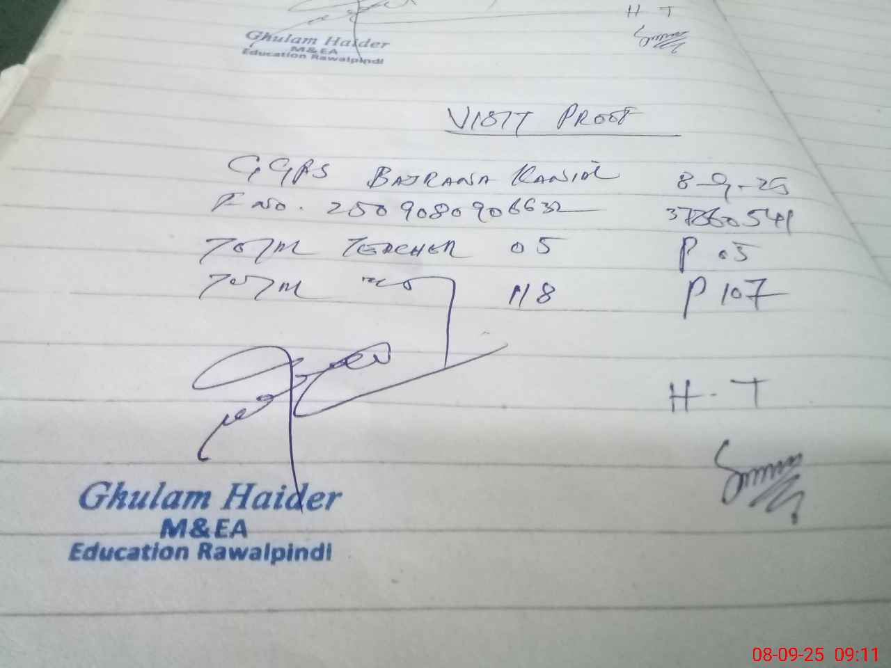 | Name: SY**** NU**** NA**** Designation: (School Headmaster's/Headmistress's) PST Phone/Cell Number: 03**** |