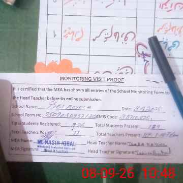 | Certified that this School was Inspected by the Undersigned MEA/DMO Today and the Information Stated Above is as Per Record. | |||||
