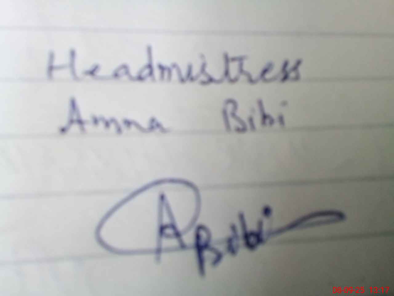 | Name: Am**** Bi**** Designation: (School Headmaster's/Headmistress's) EST Sci Phone/Cell Number: 03**** |