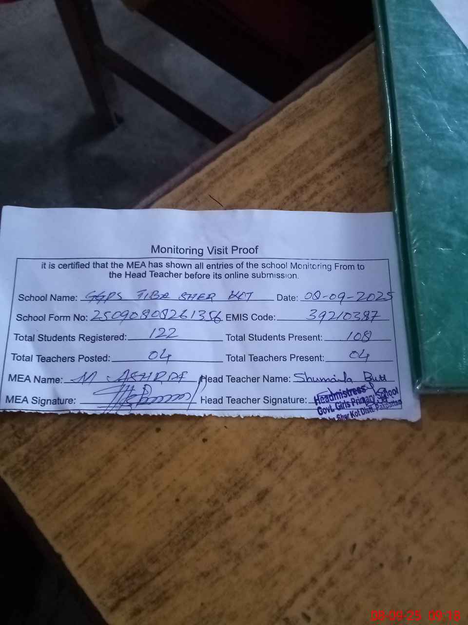 | EMIS Code: 39210387 | Name of School: GGPS TIBBA SHER KOT | |||