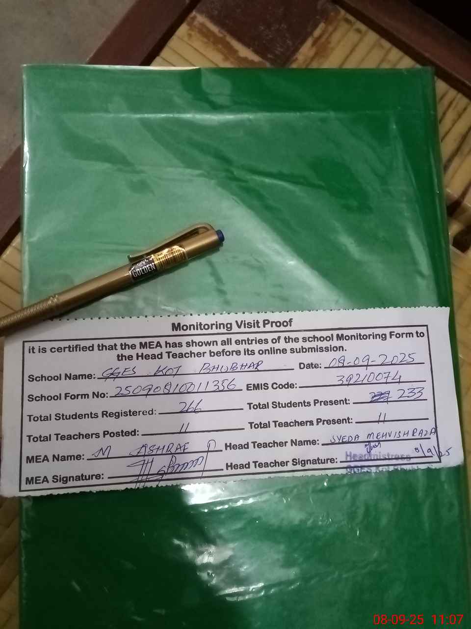 | EMIS Code: 39210074 | Name of School: GGES KOT BHUBHAR | |||