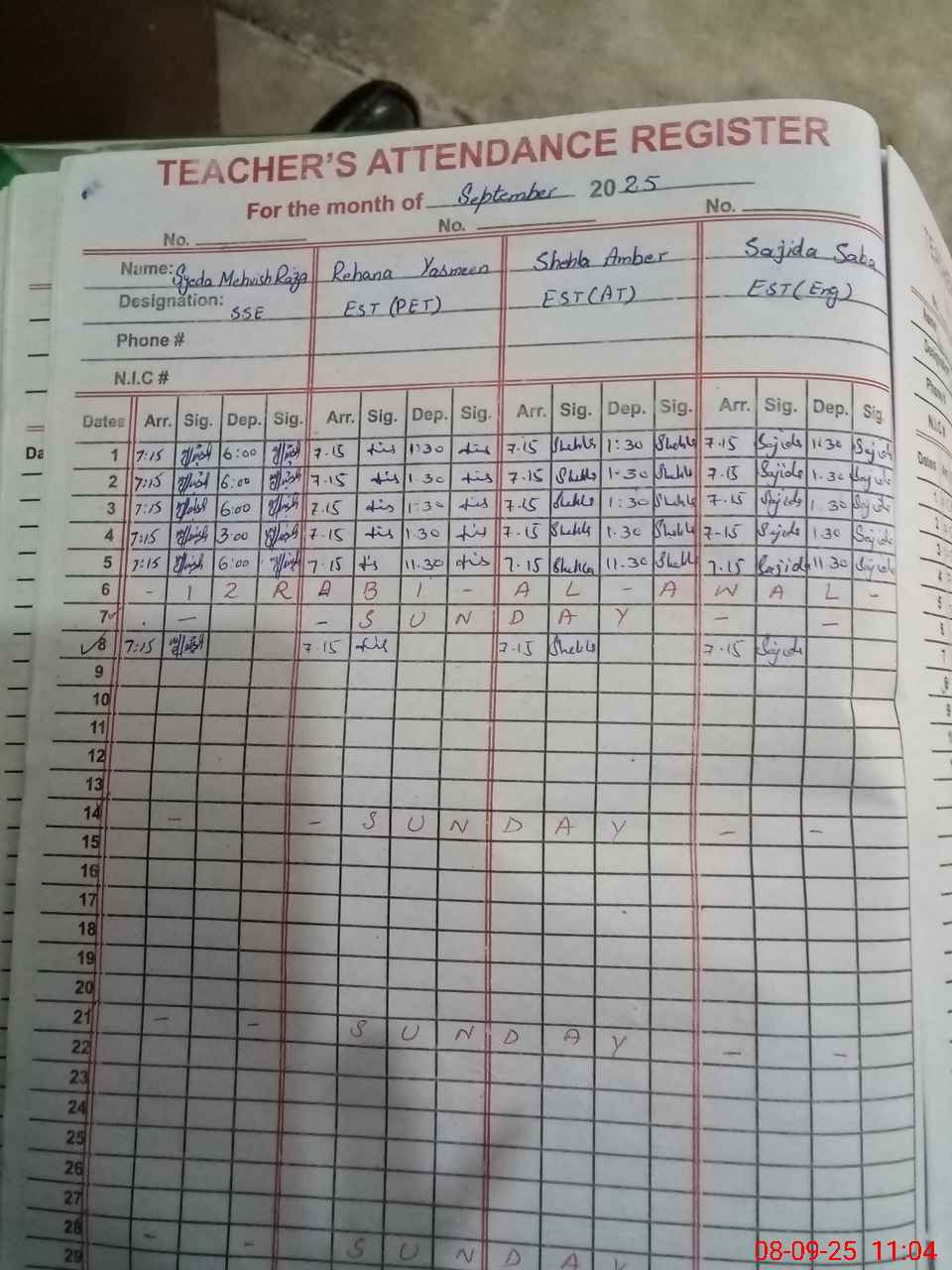 | Name: SY**** ME**** RA**** Designation: (School Headmaster's/Headmistress's) SSE SCIENCE Phone/Cell Number: 03**** |