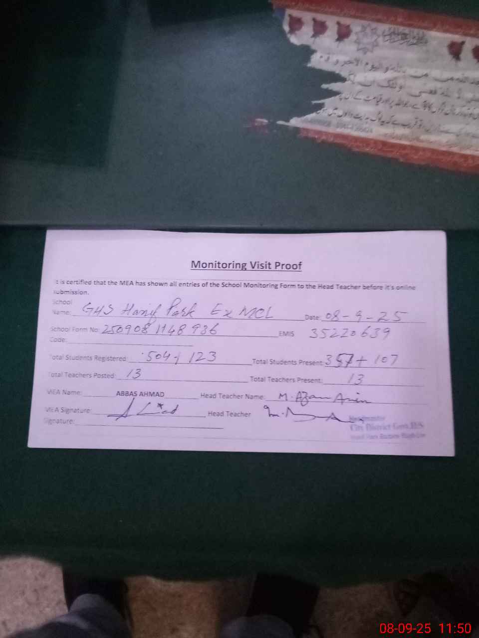| EMIS Code: 35220639 | Name of School: GHS HANIF PARK (EX-MCL) | |||