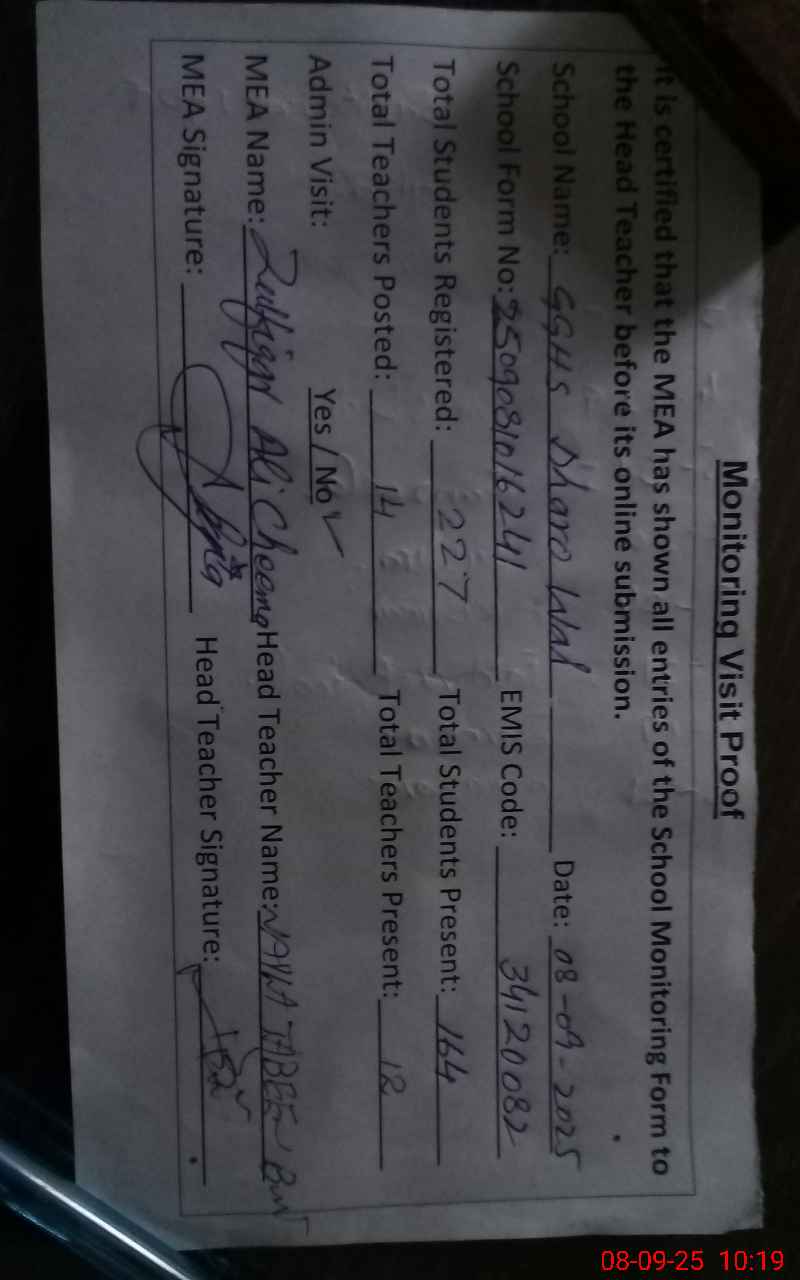 | EMIS Code: 34120082 | Name of School: GGHS DHARO WAL | |||