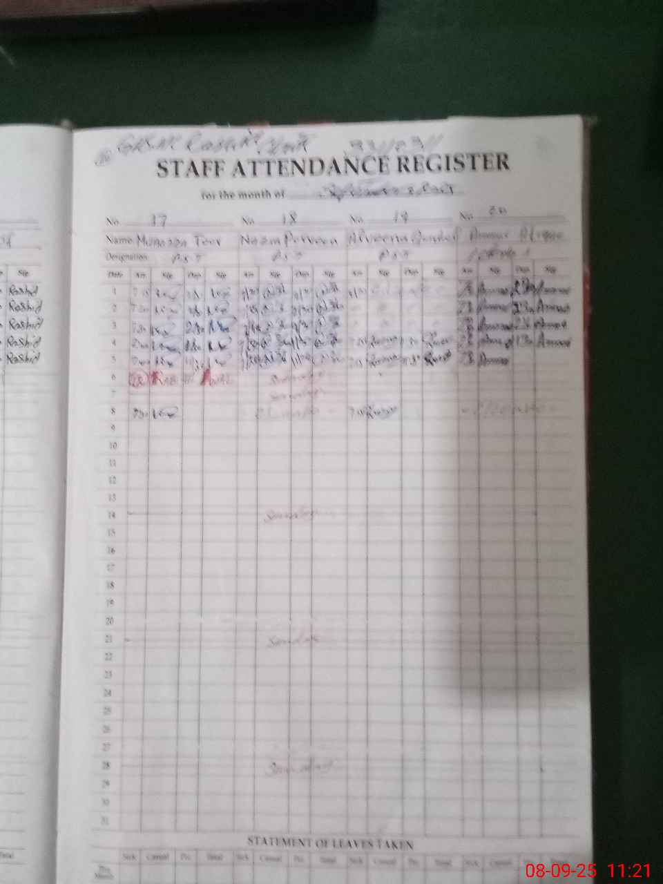 | 33**** | Na**** Pa**** | PST | Regular | 0 | 0 | 0 | 0 | 0 | 0 | 0 | 0 | 0 | Casual |