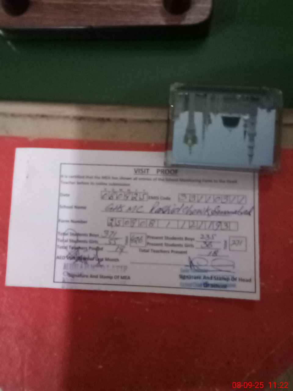 | Attendance Register | Head Teacher | MEA with School | Visit Proof |