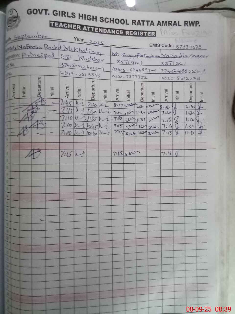 | EMIS Code: 37330073 | Name of School: GGHS RATTA AMRAL RAWALPINDI | |||