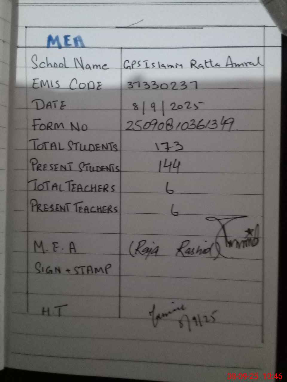 | EMIS Code: 37330237 | Name of School: GPS ISLAMIA RATTA AMRAL | |||