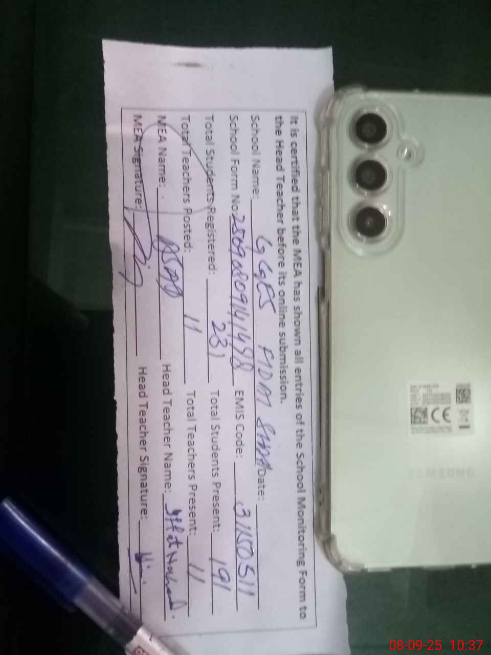 | Name: If**** Na**** Designation: (School Headmaster's/Headmistress's) SST Phone/Cell Number: 03**** |