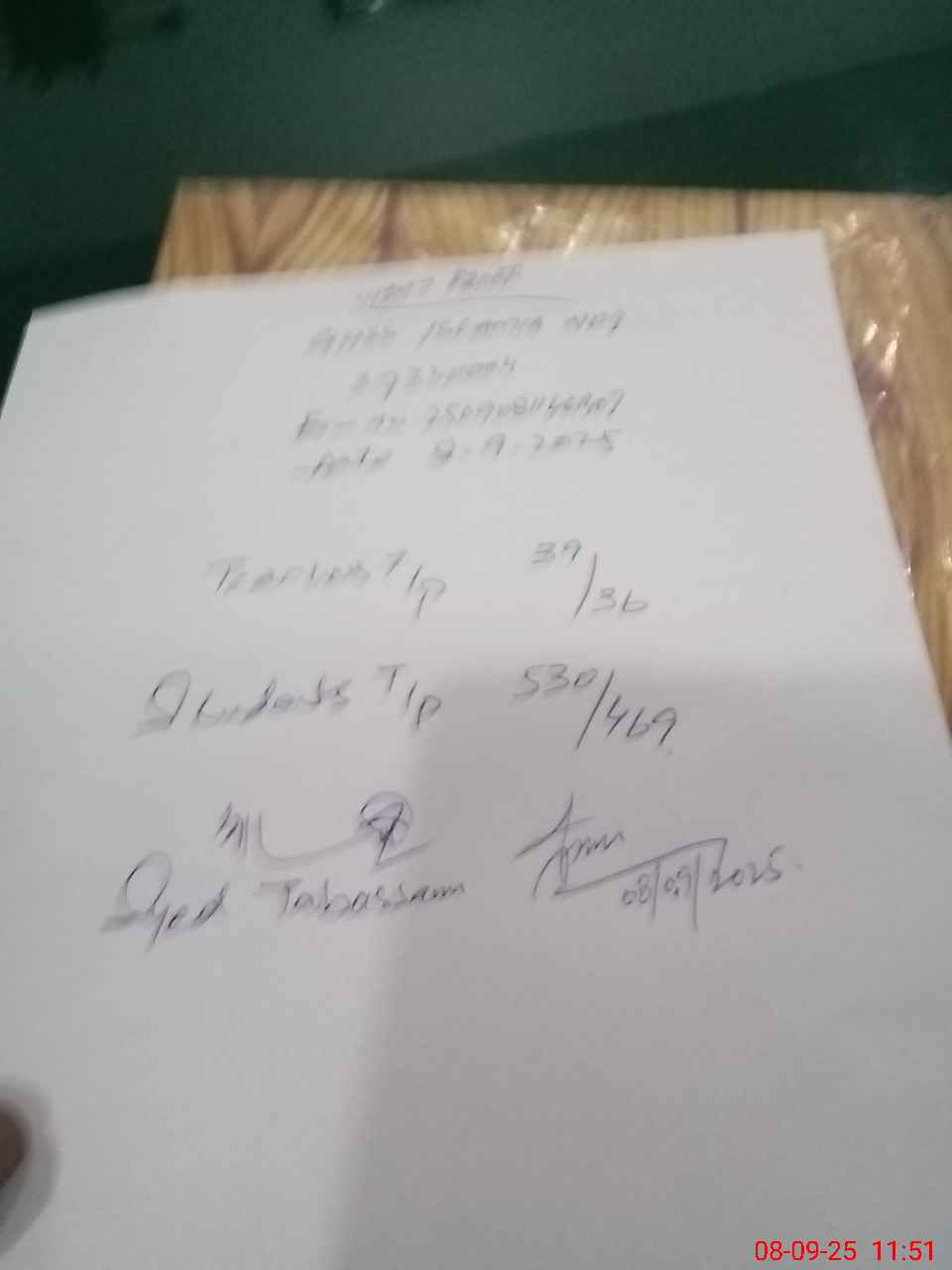 | Monitoring Date: 08-09-2025 | Start Time: 08-09-2025 11:03 AM | End Time: 08-09-2025 11:54 AM | Name of MEA: Ta**** Na**** | |