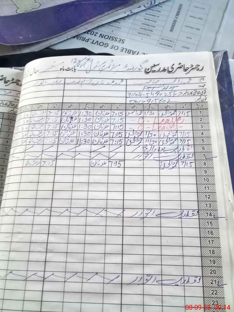 | Name: ME**** ULHA**** Designation: (School Headmaster's/Headmistress's) PST Phone/Cell Number: 03**** |