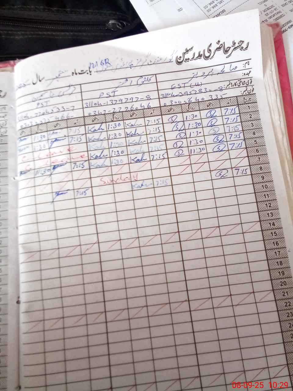 | CNIC | Full Name | Designation | R/C | Absence During Last Calender Month |