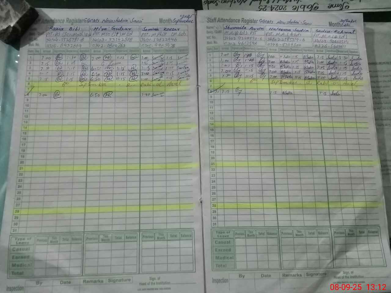 | CNIC | Full Name | Designation | R/C | Absence During Last Calender Month |