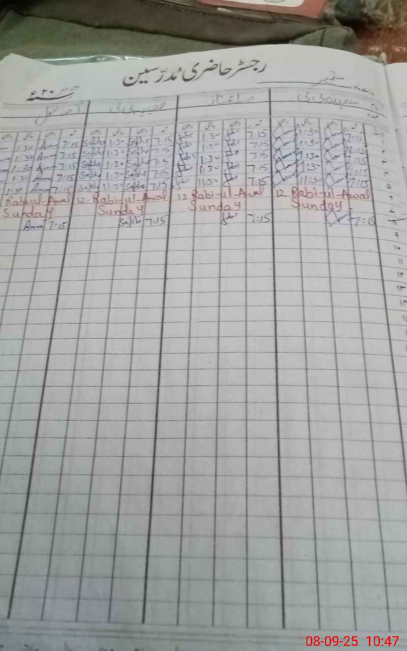 | CNIC | Full Name | Designation | R/C | Absence During Last Calender Month |