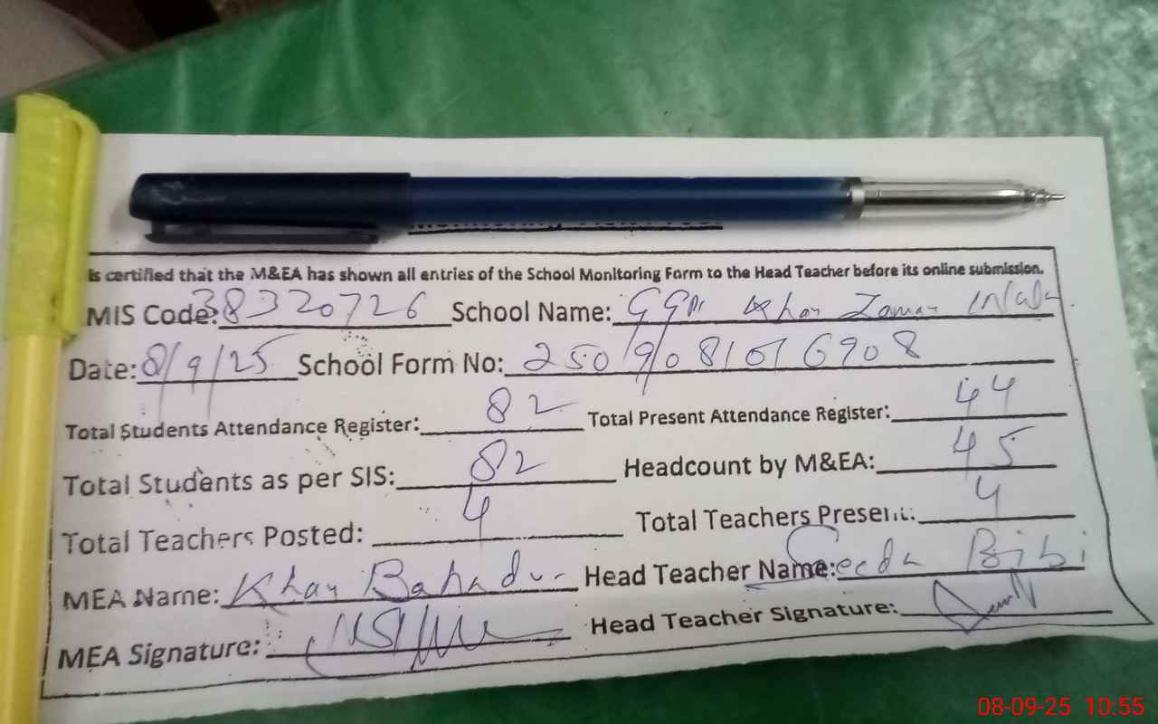 | EMIS Code: 38320726 | Name of School: GGPS KHAN ZAMAN KHAN WALA | |||