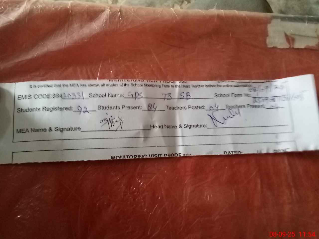 | Attendance Register | Head Teacher | MEA with School | Visit Proof |