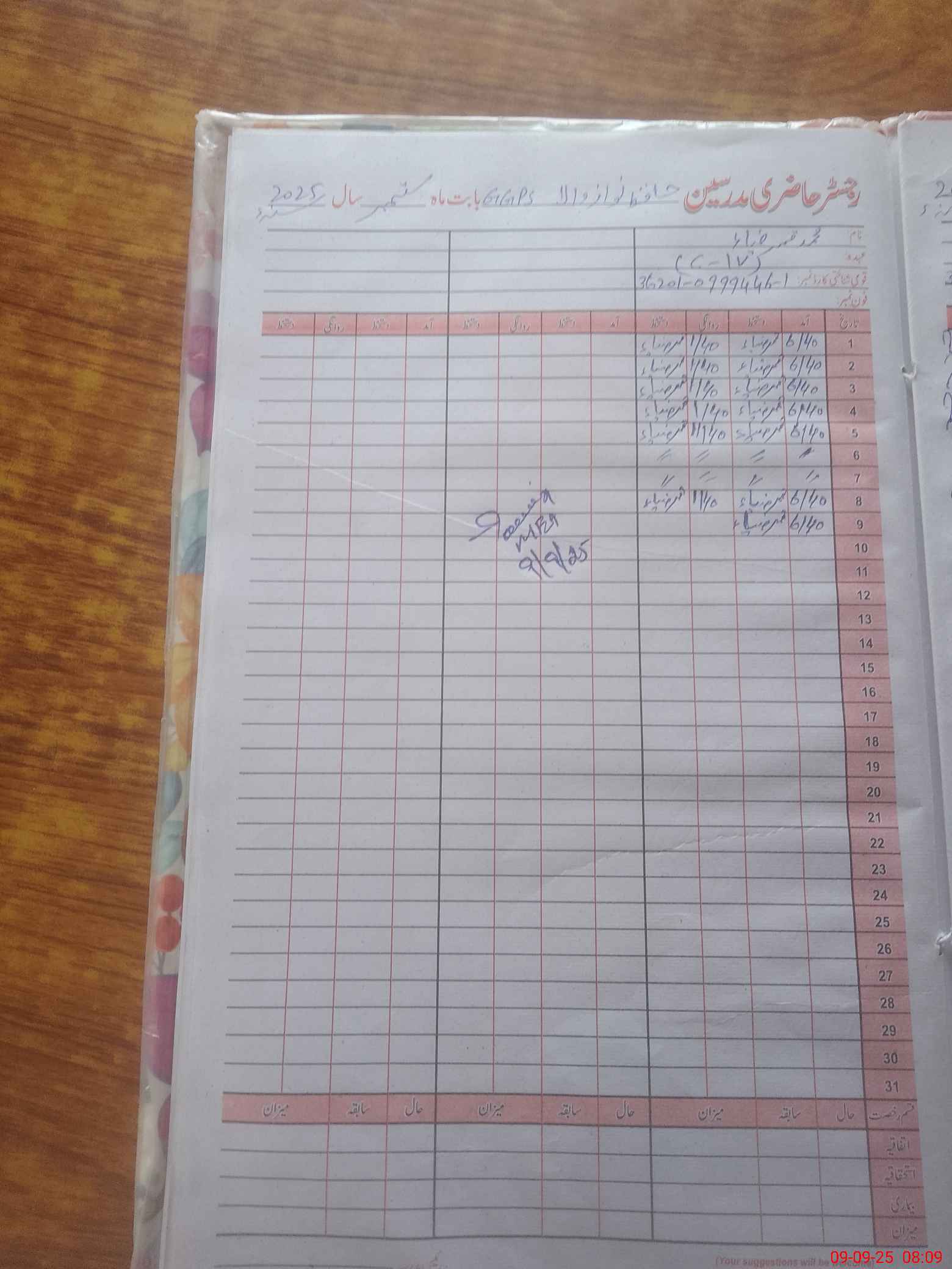 | Monitoring Date: 09-09-2025 | Start Time: 09-09-2025 07:49 AM | End Time: 09-09-2025 08:11 AM | Name of MEA: Ri**** Ah**** | |