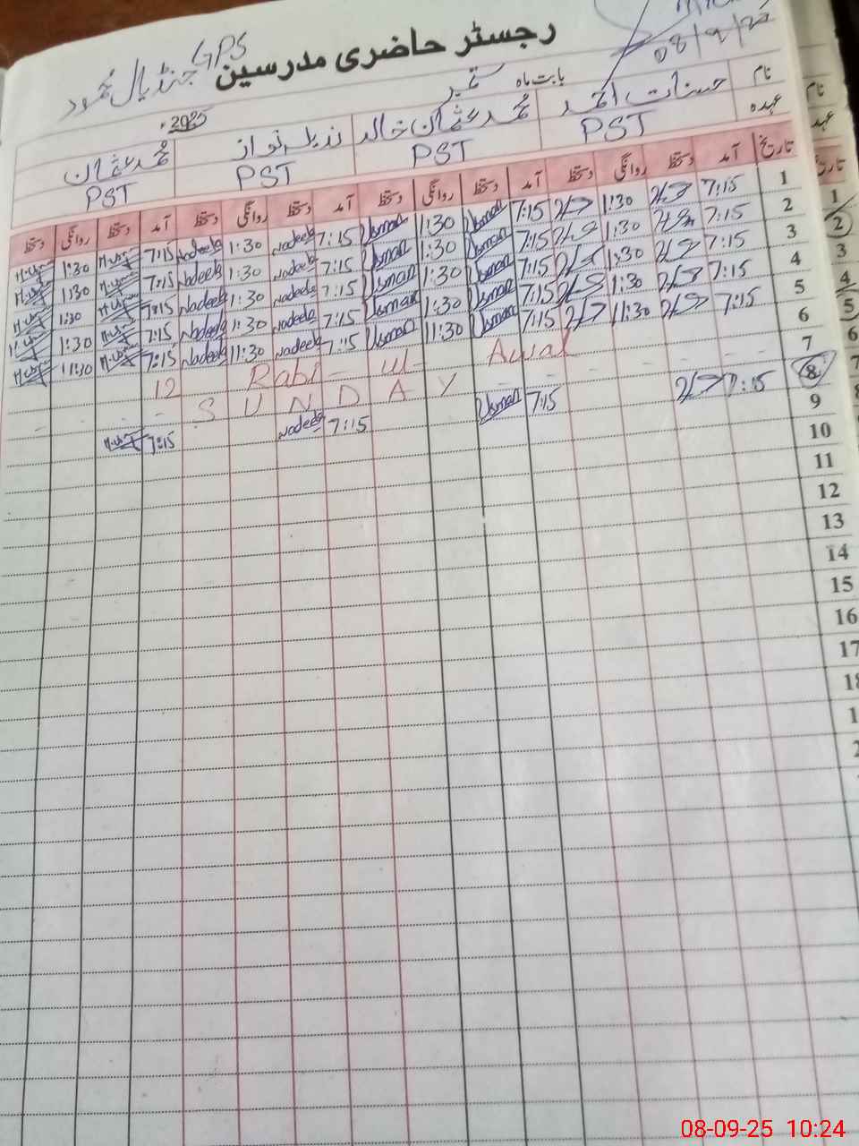 | CNIC | Full Name | Designation | R/C | Absence During Last Calender Month |