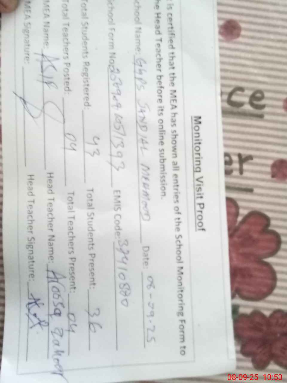 | EMIS Code: 37410580 | Name of School: GGPS JANDIAL MAHMOOD | |||