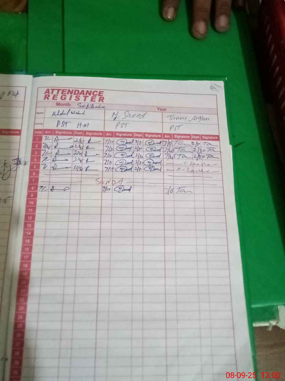 | CNIC | Full Name | Designation | R/C | Absence During Last Calender Month |