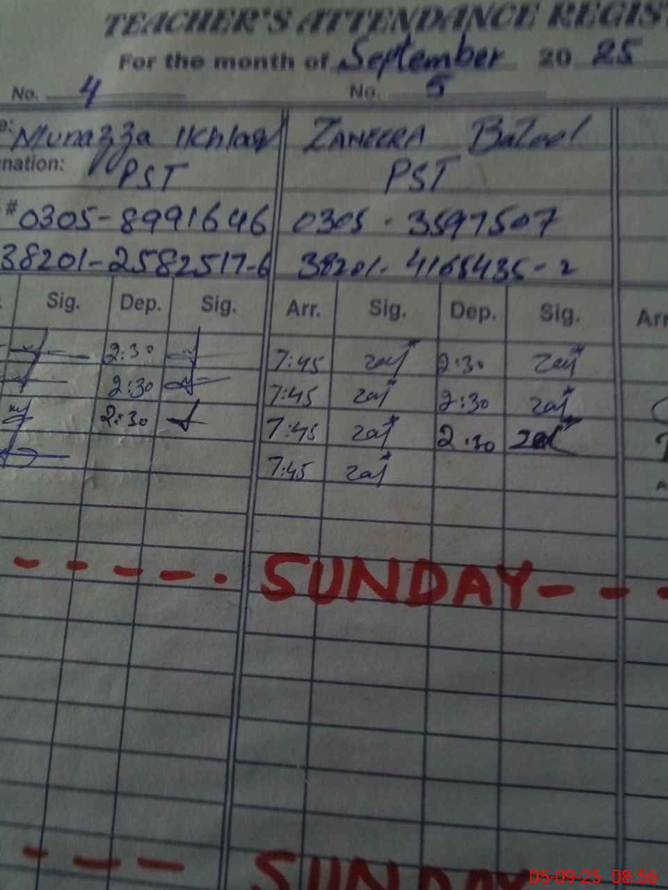 | Name: Ka**** Ak**** Designation: (School Headmaster's/Headmistress's) PST Phone/Cell Number: 03**** |