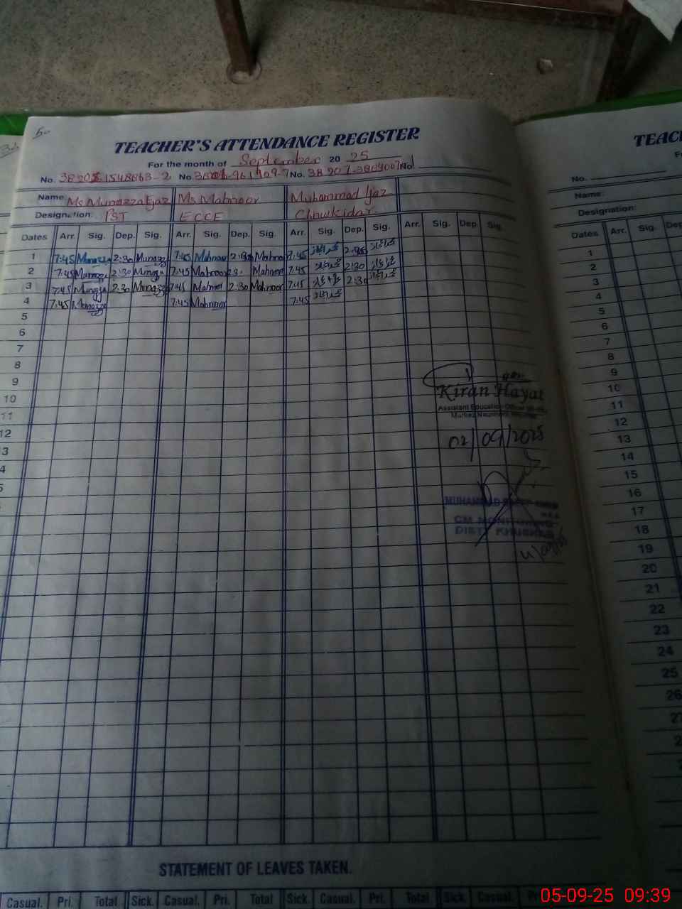 | Attendance Register | Head Teacher | MEA with School | Visit Proof |