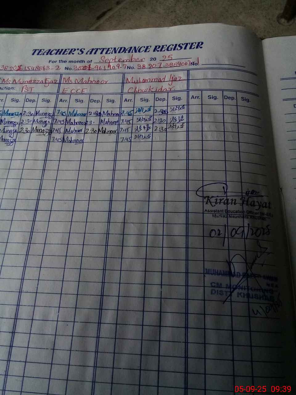 | Name: Sh**** Ak**** Designation: (School Headmaster's/Headmistress's) PST Phone/Cell Number: 03**** |