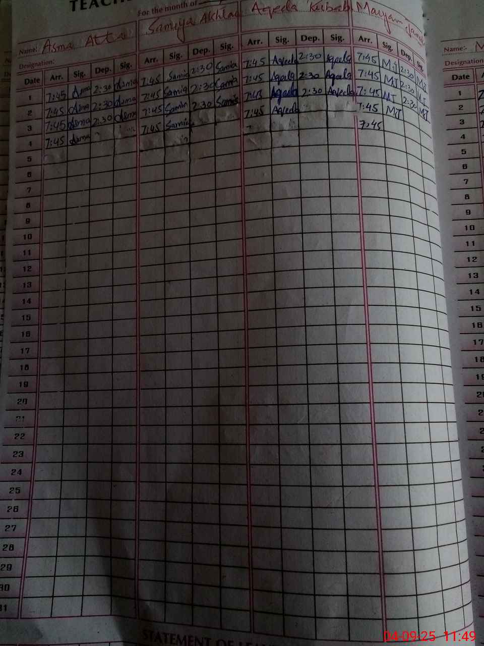 | Name: MR**** AQ**** RI**** Designation: (School Headmaster's/Headmistress's) SSE ( BIO) Phone/Cell Number: 03**** |