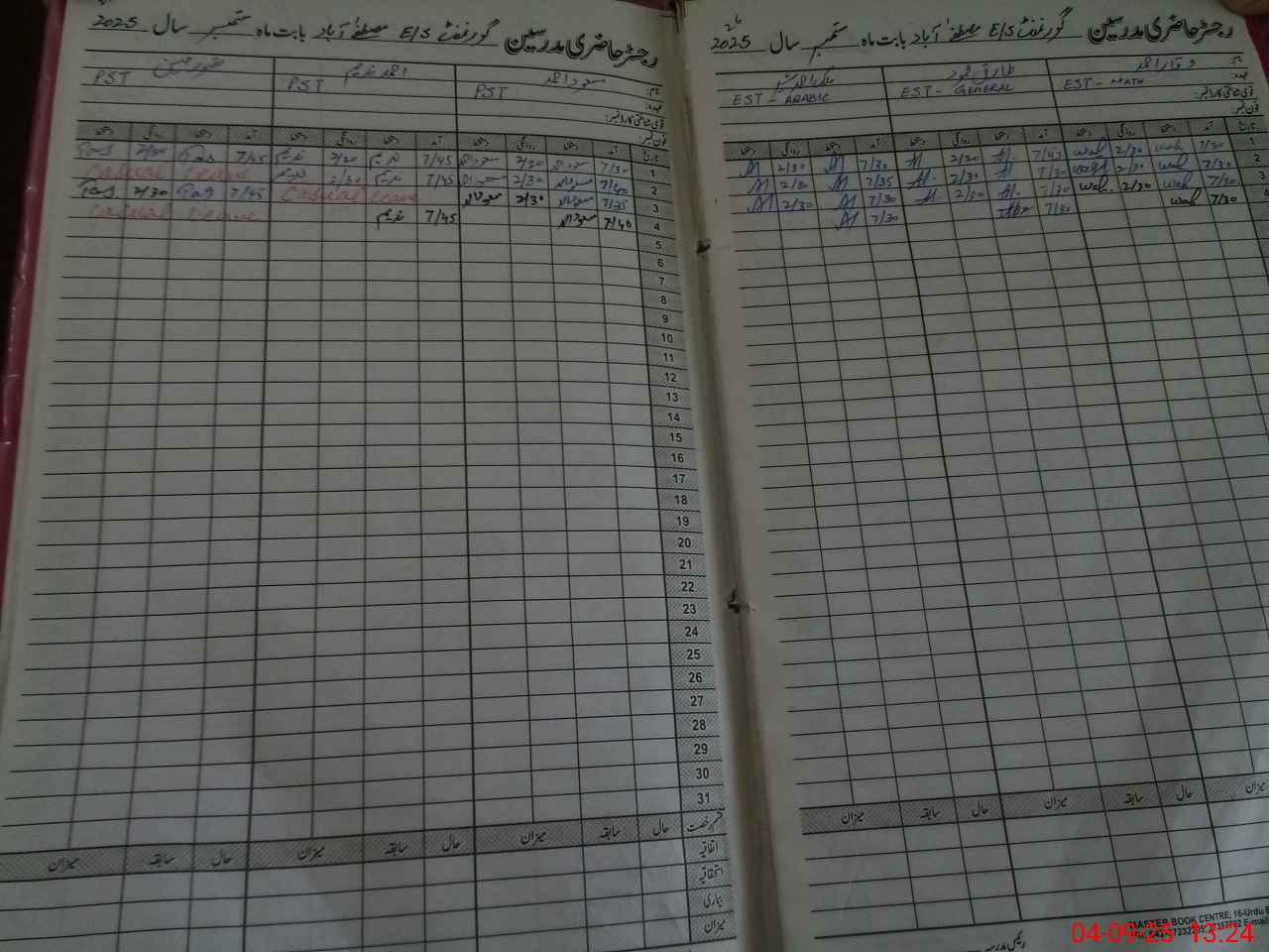 | CNIC | Full Name | Designation | R/C | Absence During Last Calender Month |
