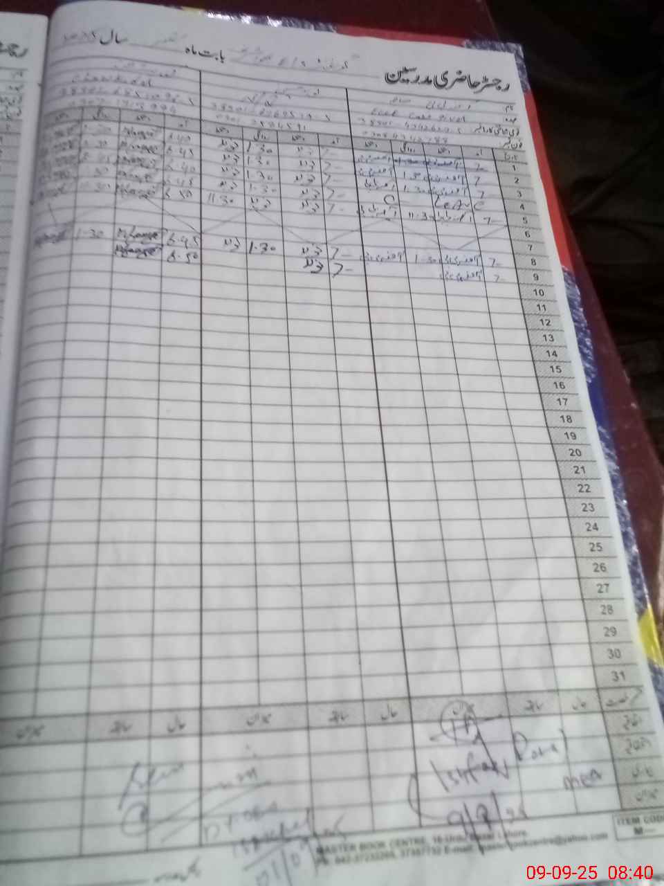 | CNIC | Full Name | Designation | R/C | Absence During Last Calender Month |