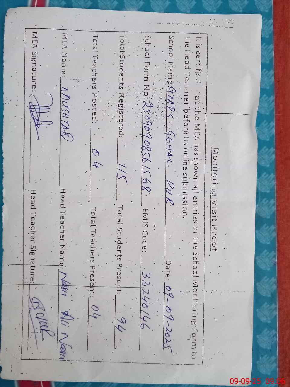 | EMIS Code: 33240146 | Name of School: GMPS GEHAL PUR | |||