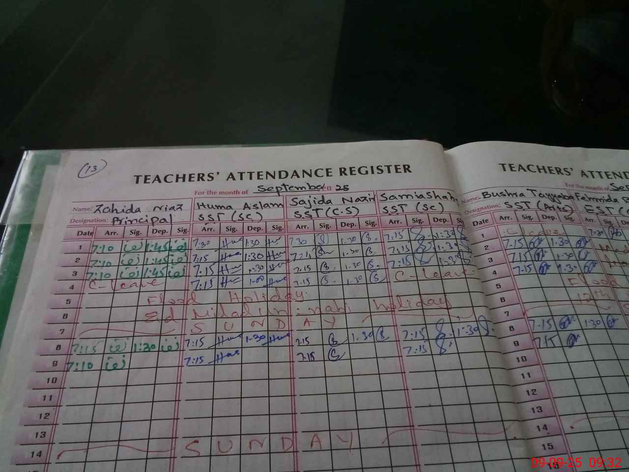 | CNIC | Full Name | Designation | R/C | Absence During Last Calender Month |