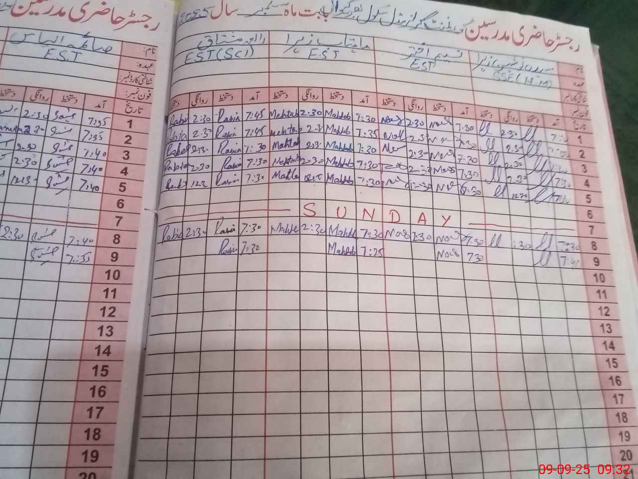 | CNIC | Full Name | Designation | R/C | Absence During Last Calender Month |