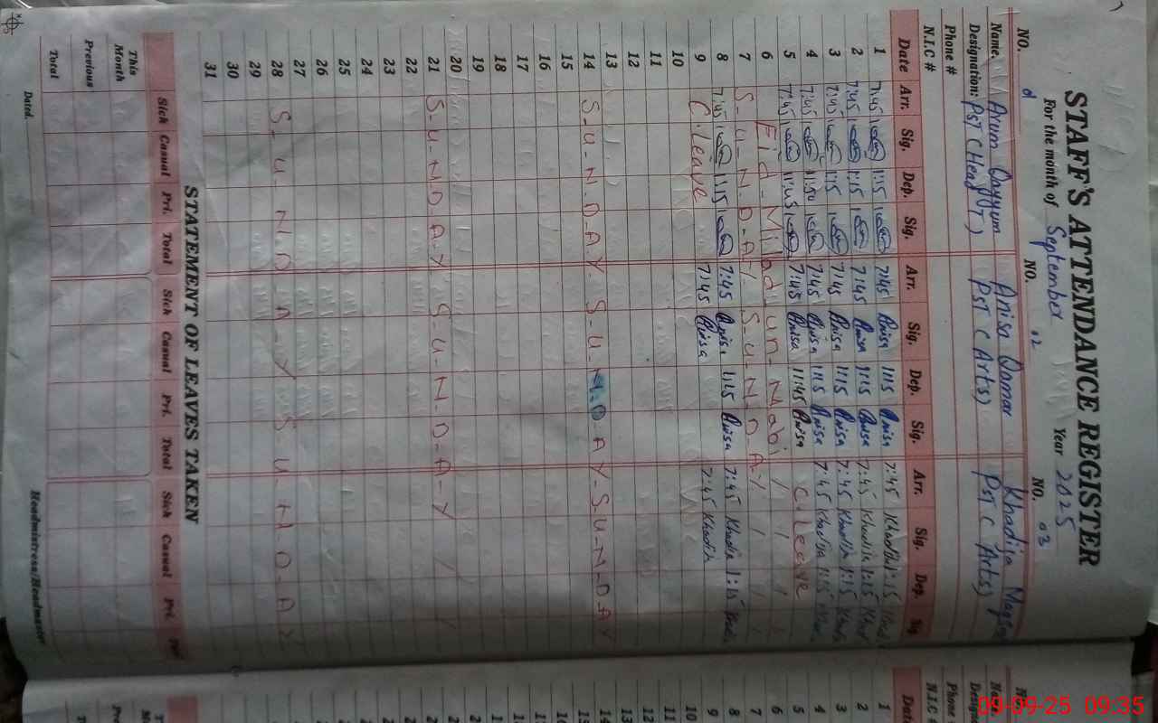 | Name: Ar**** Qa**** Designation: (School Headmaster's/Headmistress's) PST Phone/Cell Number: 03**** |