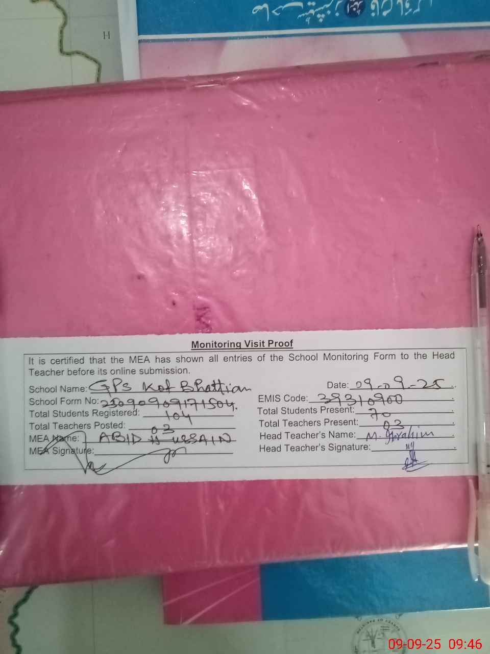 | EMIS Code: 39310900 | Name of School: GPS KOT BHATTIAN | |||