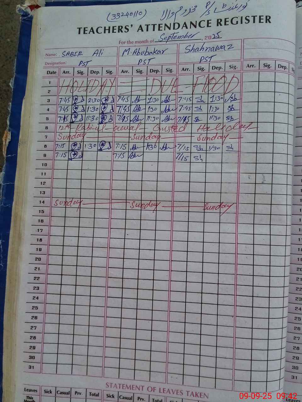 | Name: Sa**** Al**** Designation: (School Headmaster's/Headmistress's) PST Phone/Cell Number: 03**** |