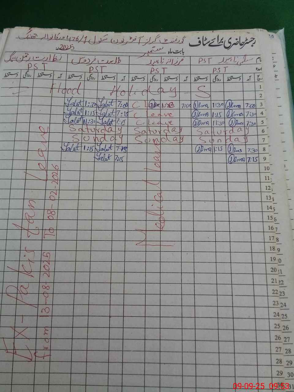| Leave | Duty | Absent | Maternity | Medical | Ex- Pak |