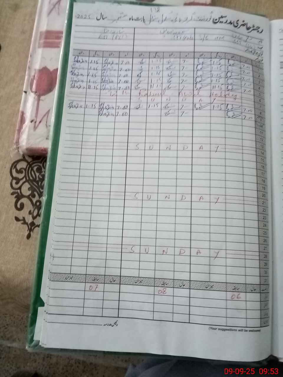 | No. of Students Present - Female | 7 | 0 | 4 | 10 | 11 | 9 | 12 | 17 | 18 | 20 | 24 | 23 | 23 | 178 | ||