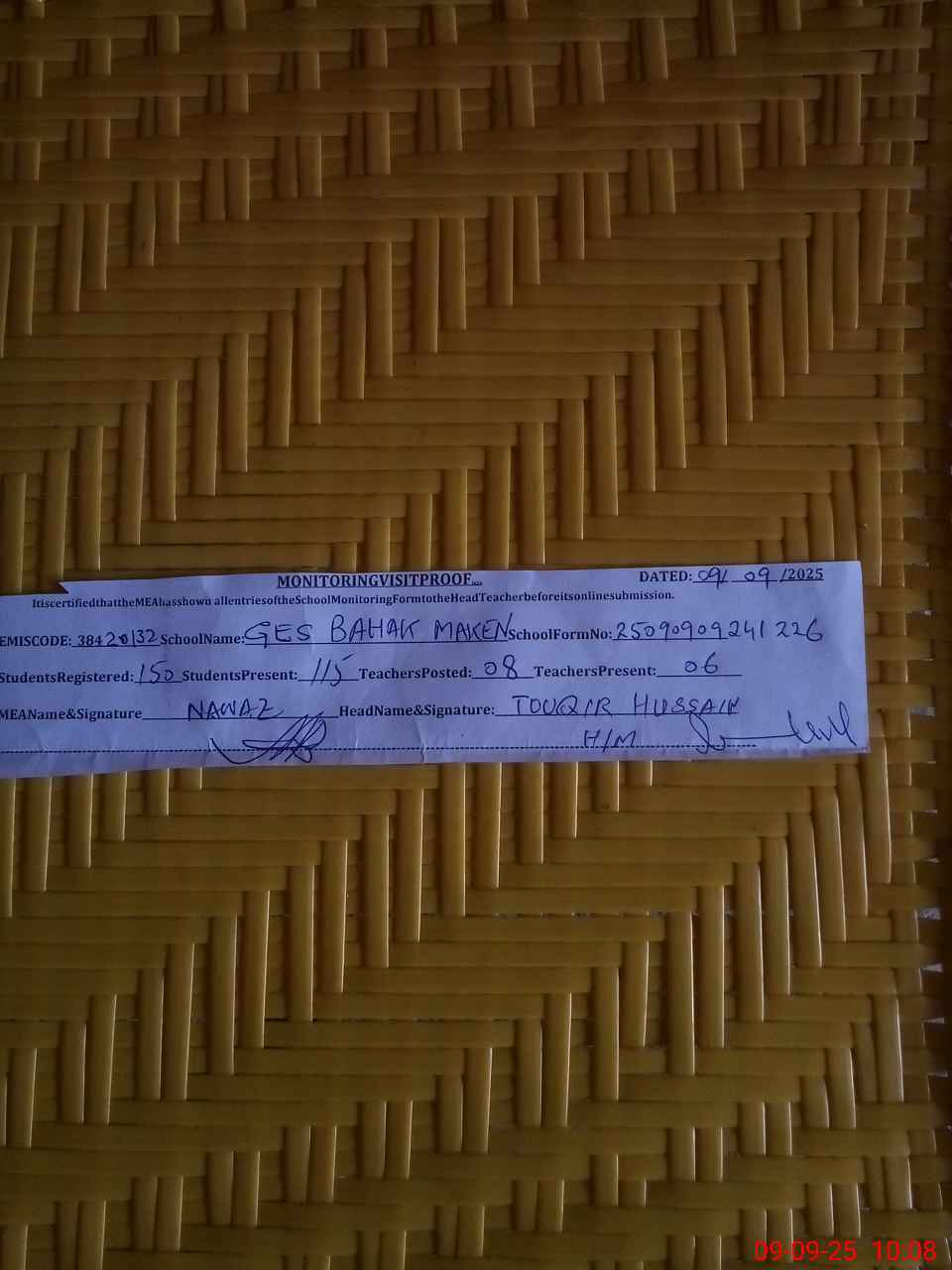 | EMIS Code: 38420132 | Name of School: GES BEHAK MAIKEN | |||