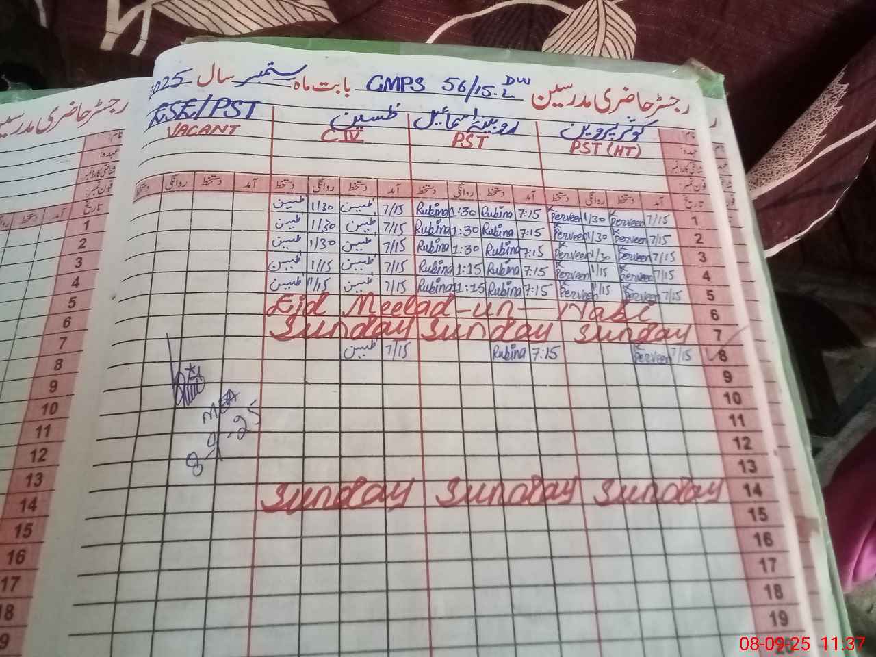 | Remarks (Use Separate Page if Required): Insaaf afternoon teaching activities are facing lot of issues Students remain absent without any sufficient cause Students inrollment is very less government teacher is not willing for afternoon teaching | |||||