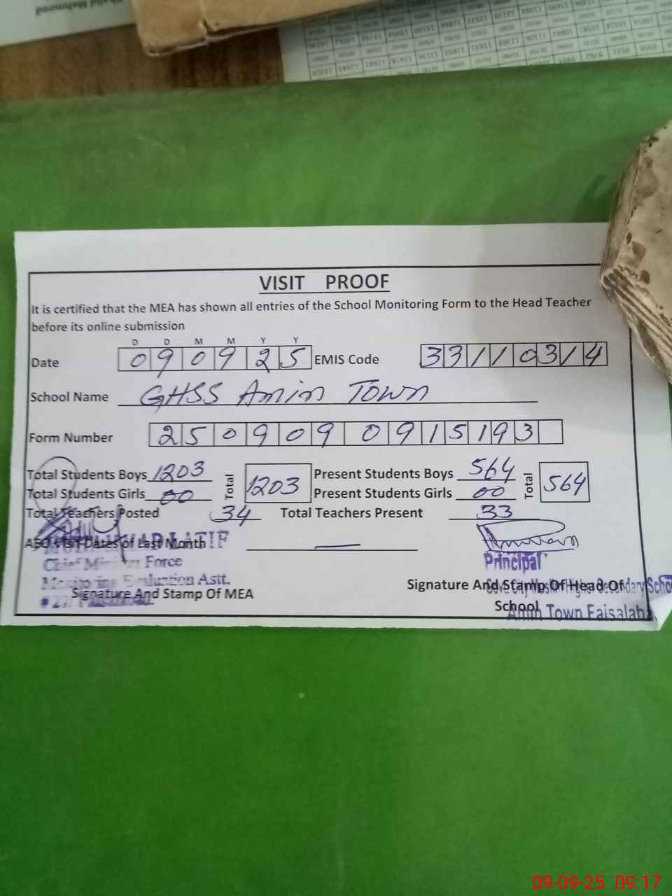 | Certified that this School was Inspected by the Undersigned MEA/DMO Today and the Information Stated Above is as Per Record. | |||||
