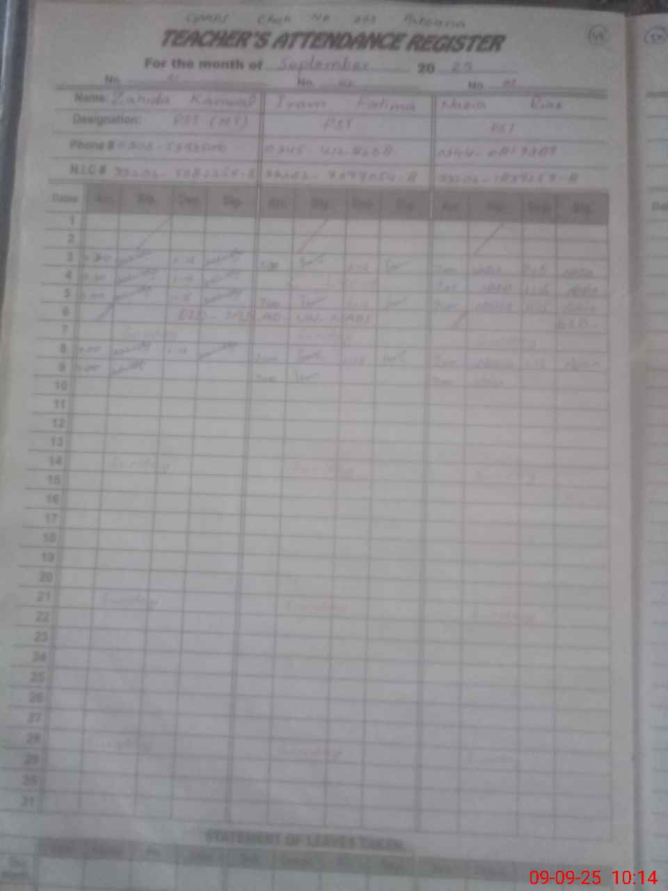 | Name: Za**** Ka**** Designation: (School Headmaster's/Headmistress's) PST Phone/Cell Number: 03**** |