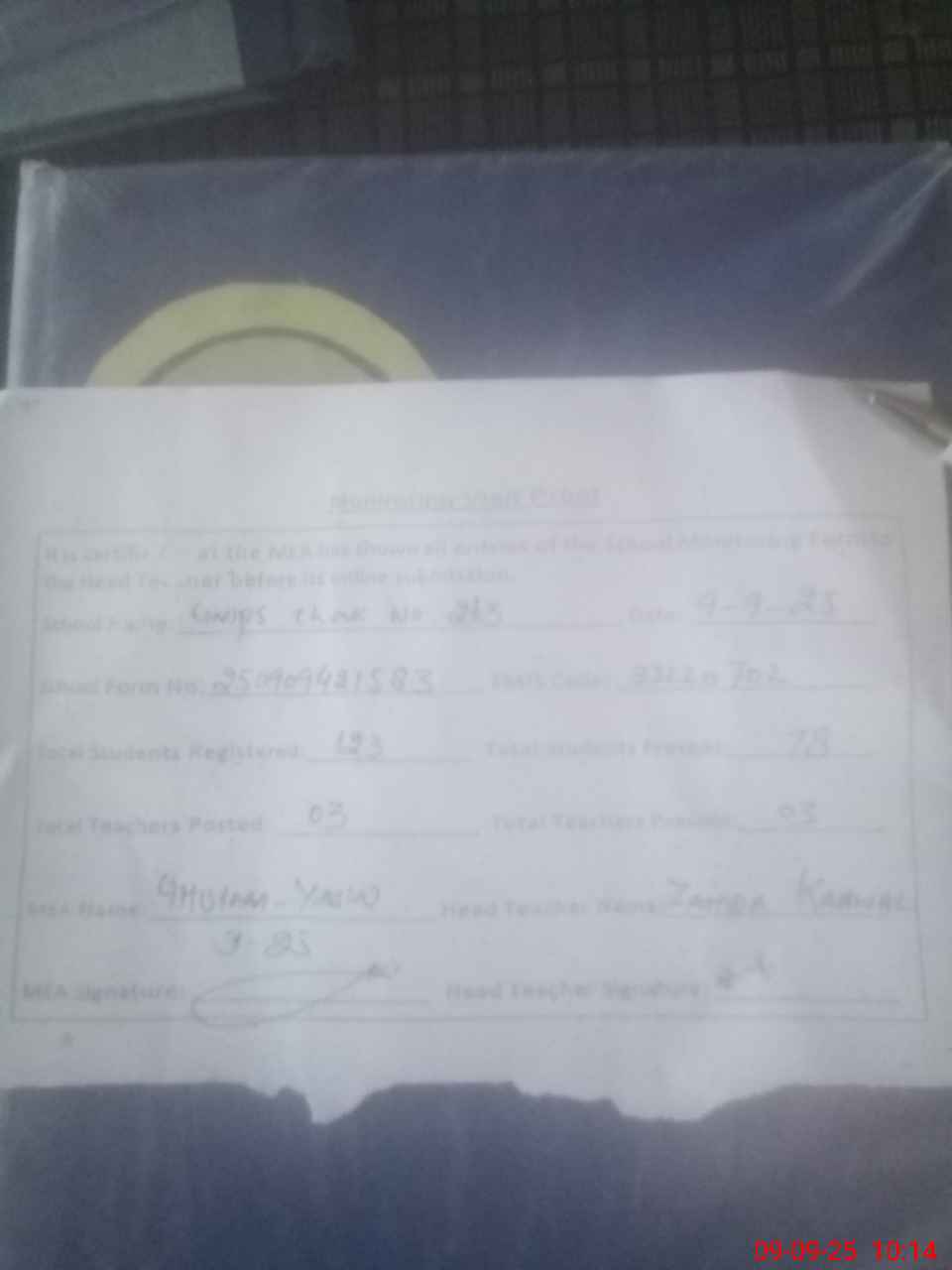 | EMIS Code: 33220702 | Name of School: GMPS CHAK NO 263 JB | |||