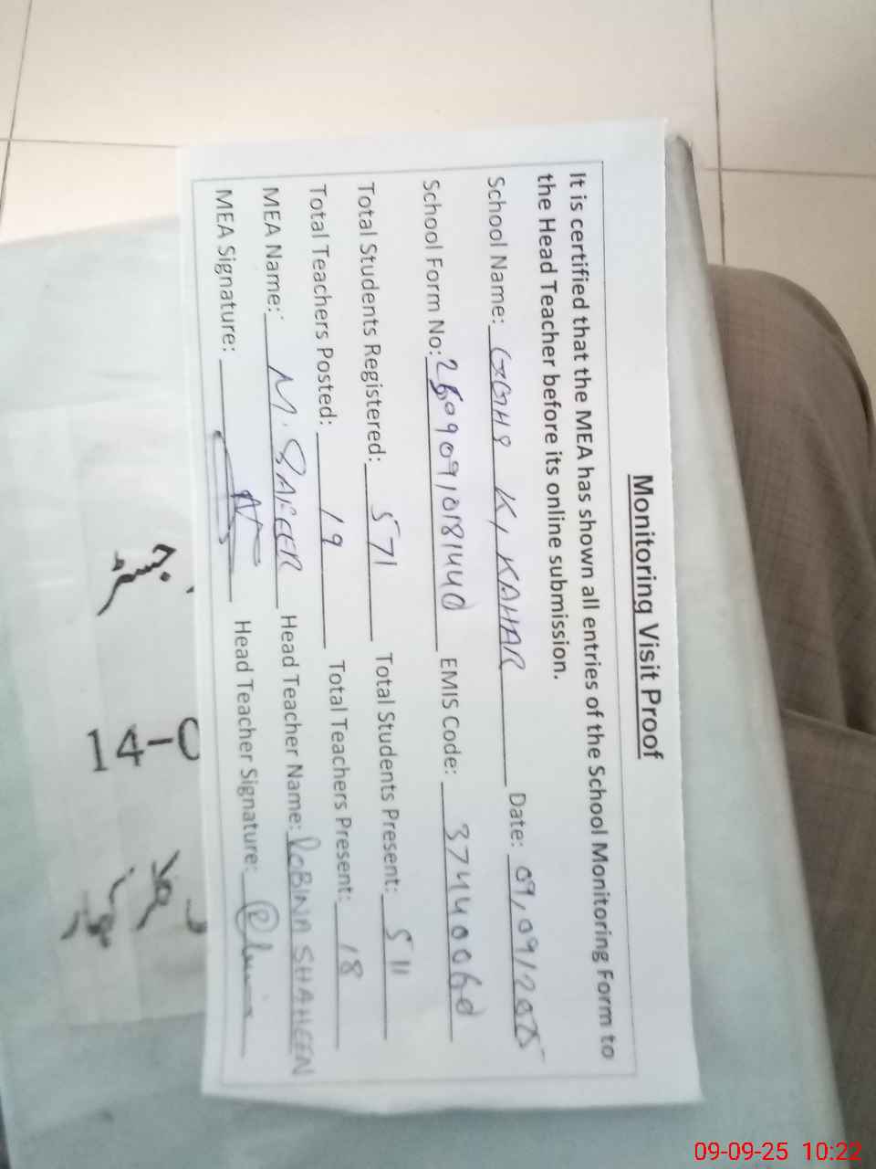 | EMIS Code: 37440060 | Name of School: GGHS KALLAR KAHAR | |||