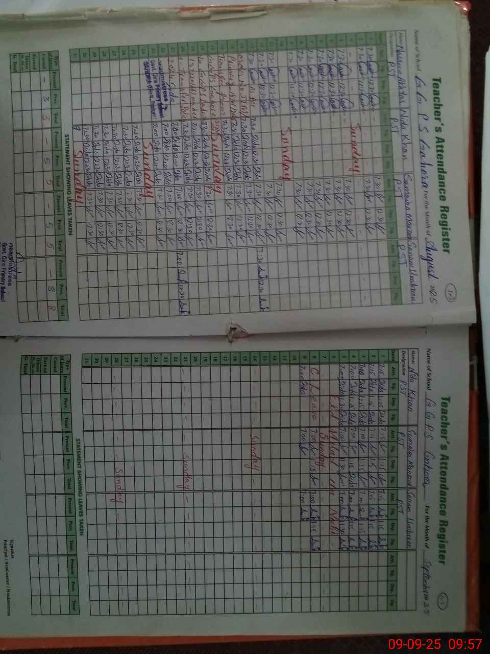 | Remarks (Use Separate Page if Required): Sir NSB record not maintain new PST Teacher NIDA Khan not understand about NSB Last Head teacher Nasreen Akhtar transfer to GGPS Ladwa | |||||