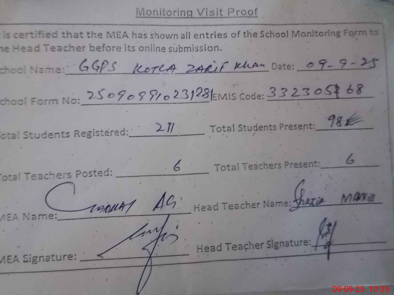 | EMIS Code: 33230568 | Name of School: GGPS KOTLA ZAREEF KHAN | |||